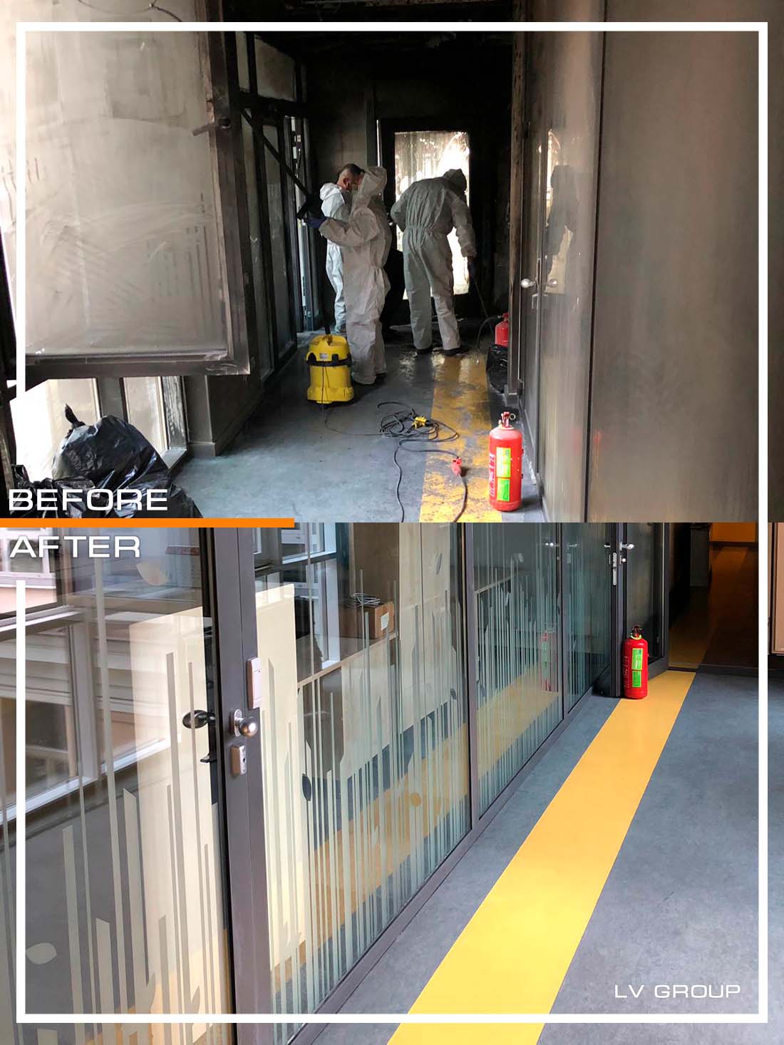Kvalifikuotų specialistų komanda po gaisro atkurs pramonines, komercines arba gyvenamąsias patalpas. Nesvarbu, kaip stipriai ugnis suniokojo sandėlį ar kambarius - mūsų darbuotojai grąžins jiems buvusį vaizdą. Inžinieriai ir technikai ras sprendimą kaip per trumpą laiką atkurti apdailą ir įrenginius, nors gali atrodyti, jog jie sugadinti nepataisomai.