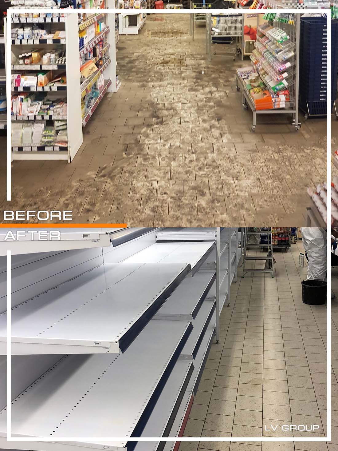 - Parduotuvės lentynų (600 m²) ir šviestuvų (175 vnt.) valymas