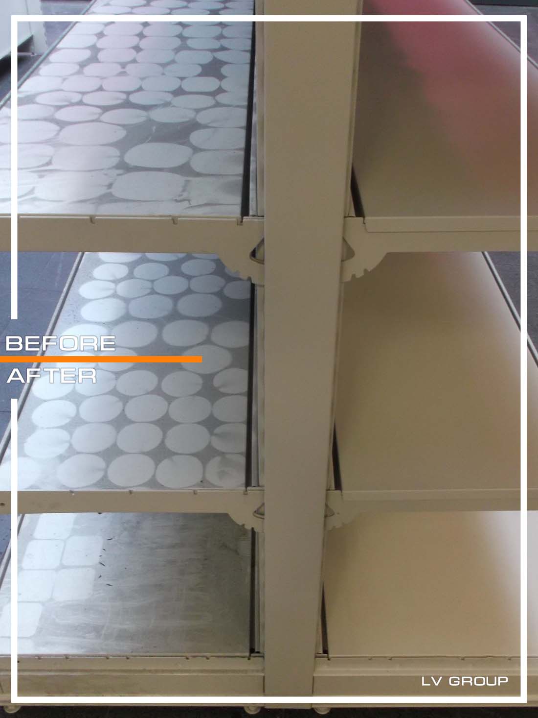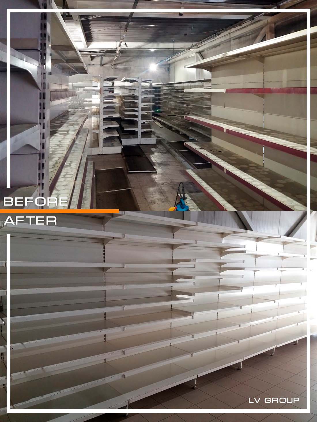 - Lentynų dažymas ir pakeitimas - 690 m²